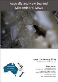 This resulted in the genesis of the Australia and New Zealand Micromineral News. The original intent was to publish issues quarterly, however this is very dependent on contributions. It will be available electronically (via pdf files at this site) and at no cost. Yes, that’s right. FREE! As with many of these ventures, it will only succeed with contributions of articles. See inside issues for details on how you can participate.