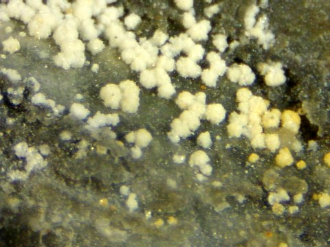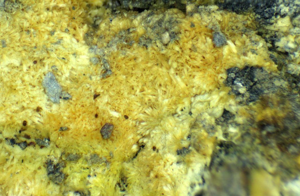 Antimony oxide minerals can be found on the dumps. No analyses is known and a number of species may occur.