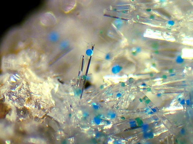Unknown Copper Silicate: A transparent green copper silicate (unknown species) coats other copper minerals.