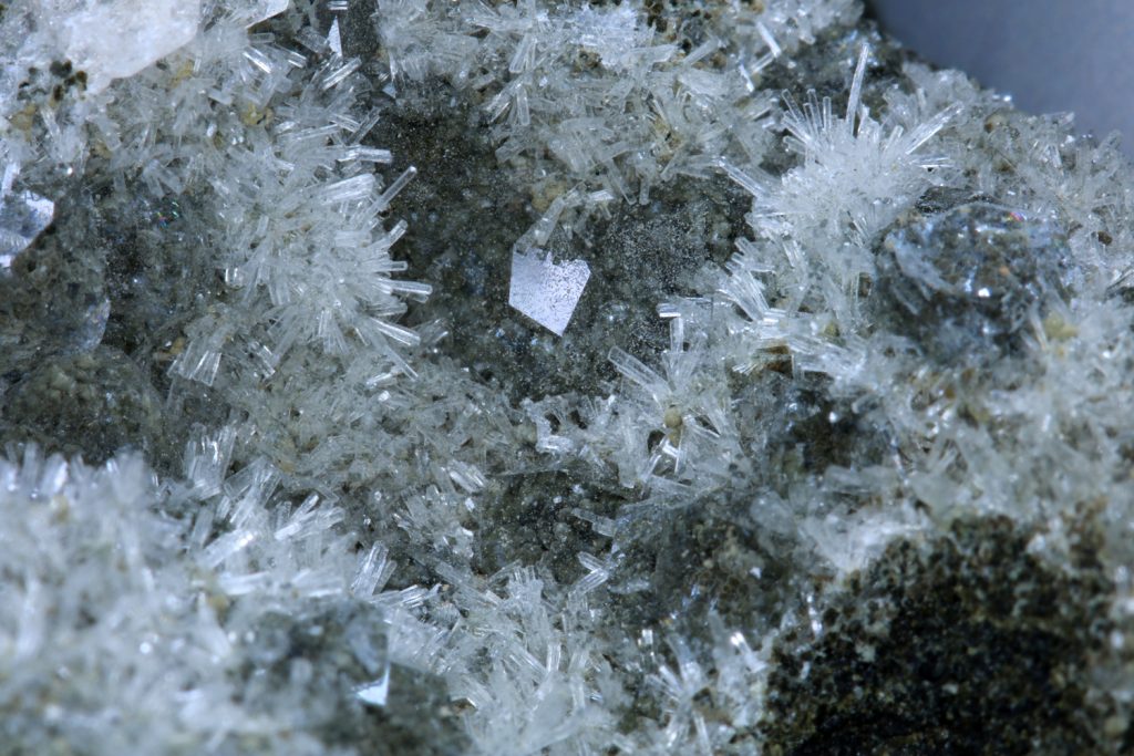 Digenite: Black platy crystals tentatively identified as digenite (Birch, 1989).