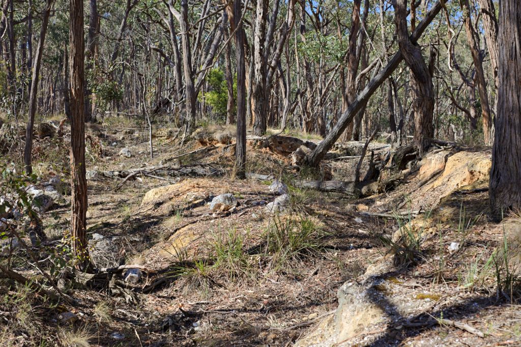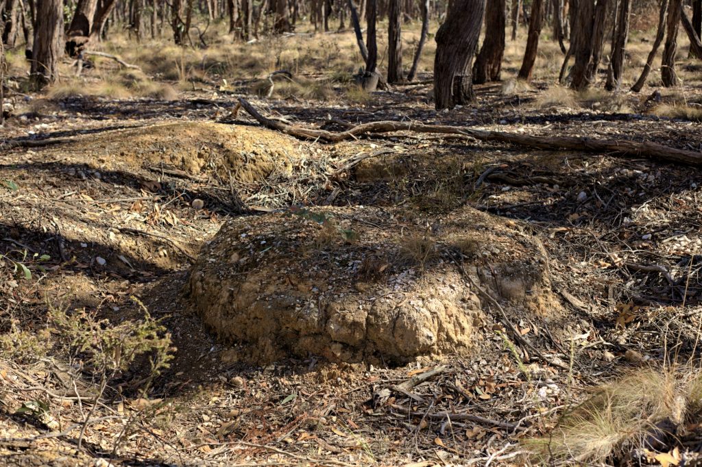 I was fortunate to be able to visit the area today, with the Ballarat Field Naturalists. Old workings from the original gold rush, through to the mid 20th Century workings are clearly visible, and include a water race, numerous puddlers, and many many workings such as shallow pits, sluiced areas, etc. This is all on private property.