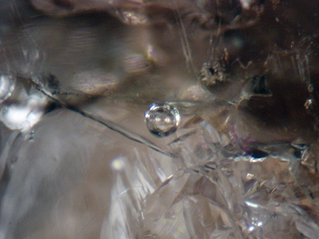 Gas bubbles in liquid inclusions are not uncommon but are difficult to find until you have “got your eye in”. Editions of both the Mineralogical Record and the UK Journal of Mines and Mineralogy have featured photographs of Mooralla Crystals (although both have misspelt the locality as “Moorella”), and the special publication from the Mineralogical Society of Victoria, Gemstones of Victoria, features a section on Mooralla.